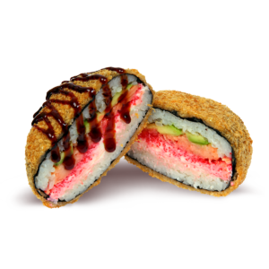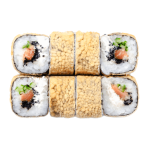 280 гСклад: васабі, імбир, крем-сир, лосось, норі, огірок, рис, соєвий соус, сухарі панко, темпура, тобіко чорна