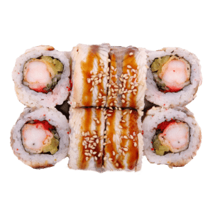 270 гСклад: васабі, вугор, дайкон, імбир, кунжут білий, масаго, норі, огірок, рис, соєвий соус, соус унагі, тигрова креветка