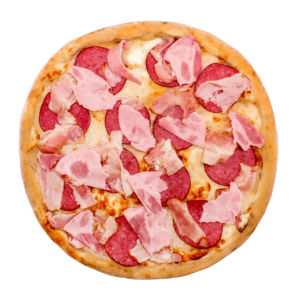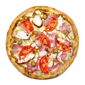 30 смСклад: бекон, ковбаски мисливські, курка, моцарелла, перетерті томати, рулет індичий