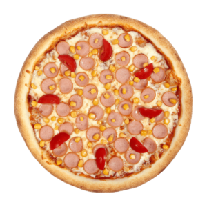 30 смСклад: гірчиця Америка, ковбаски білі, ковбаски мисливські, маслини, моцарелла, перетерті томати, печериці