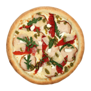 30 смСклад: болгарський перець, вершки, крем-сир, моцарелла, пармезан, песто соус, рукола, рулет індичий