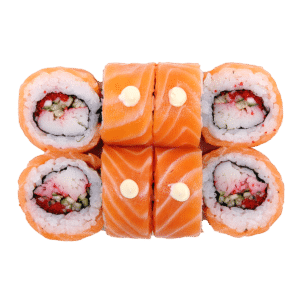 260 гСклад: васабі, імбир, крабова паличка, лосось, норі, огірок, рис, соєвий соус, тобіко червона, японський майонез