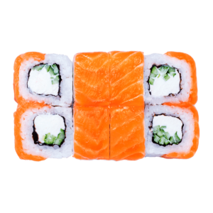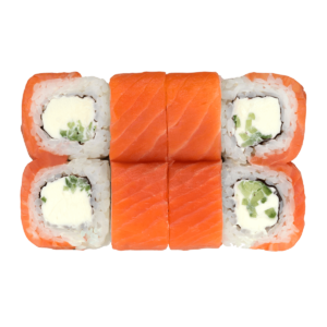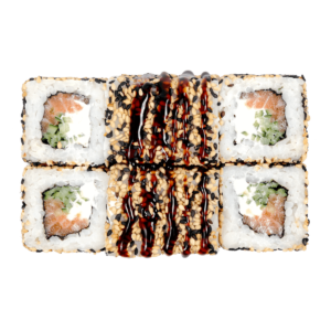 255 гСклад: авокадо, васабі, імбир, крем-сир, кунжут микс, лосось копчений, норі, огірок, рис, соєвий соус, соус унагі