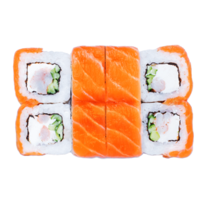 270 гСклад: авокадо, васабі, імбир, крем-сир, лосось, норі, огірок, рис, соєвий соус, тобіко червона