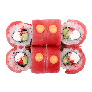 270 гСклад: авокадо, васабі, імбир, крем-сир, норі, огірок, рис, соєвий соус, соус спайс, тобіко червона, тунець