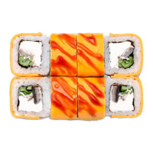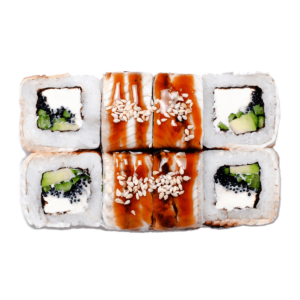 265 гСклад: васабі, вугор, імбир, крем-сир, кунжут микс, норі, огірок, рис, соєвий соус, соус унагі, чеддер