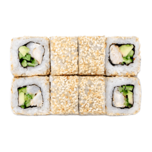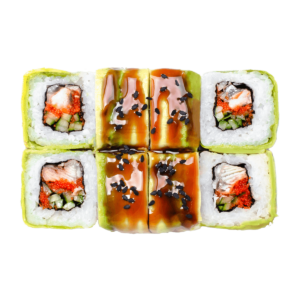 255 гСклад: авокадо, васабі, імбир, креветка, крем-сир, кунжут микс, норі, огірок, рис, соєвий соус, соус унагі