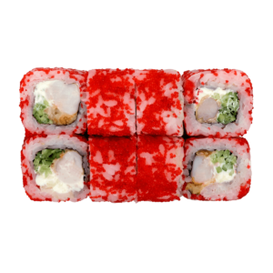 250 гСклад: васабі, імбир, креветка Тигрова, крем-сир, норі, огірок, рис, соєвий соус, тобіко червона