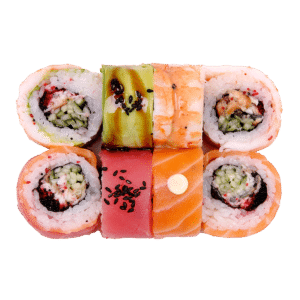 280 гСклад: авокадо, васабі, вугор, імбир, кунжут білий, лосось, норі, огірок, рис, соєвий соус, соус горіховий, соус унагі, тигрова креветка, тобіко мікс, тунець