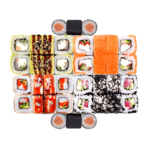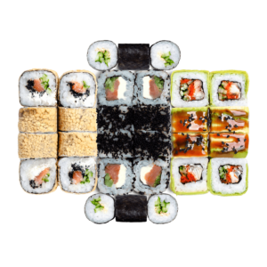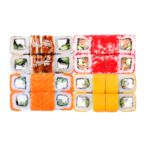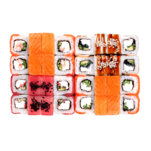 1095 гСклад: Авокадо з лососем, васабі, імбир, Каліфорнія лосось, Маки огірок, соєвий соус, Філадельфія Прованс, Філадельфія Спайс