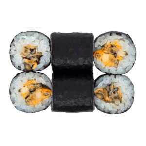 210 гСклад: васабі, імбир, масаго, мідія, норі, огірок, рис, соєвий соус, японський майонез