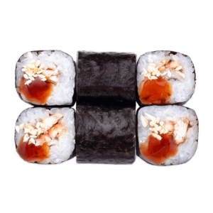 280 гСклад: авокадо, васабі, вугор, імбир, крем-сир, кунжут микс, норі, огірок, рис, соєвий соус, соус унагі, тобіко чорна