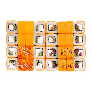 290 гСклад: васабі, гауда, імбир, креветка Тигрова, крем-сир, кунжут микс, манго, норі, соєвий соус, соус апельсиновий, соус Шрірача, японський майонез